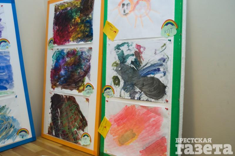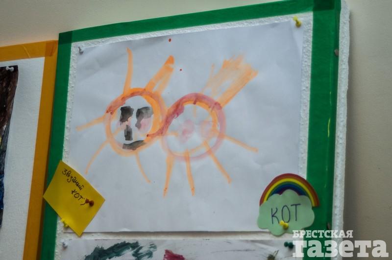 «Раньше у него были в основном каракули. Сейчас появляются сюжетные рисунки: деревья, кот. Матвей пытается рисовать даже портреты, — рассказала мама мальчика Ольга Вельгас. — Выставка для нас — способ сказать: «Привет, мы тоже есть!»