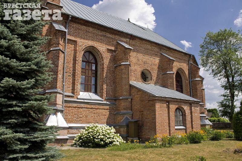 Мы покинули пределы Брестчины и оказались в Гродненской области. Здесь находится агрогородок Гнезно (Волковысский район), где располагается действующий костел Святого Михаила Архангела. Это уникальный памятник готической архитектуры XVI века. В 1524 году владельцы имения Гнезно (или Гнезная) Ян и Эльжбета Шеметовичи выдали фундуш (капитал, завещанный на благотворительные цели — прим. авт.) на строительство костела. Его архитектура демонстрировала яркие черты поздней готики: подвесные арки, прямоугольные ниши, ступенчатые консоли.