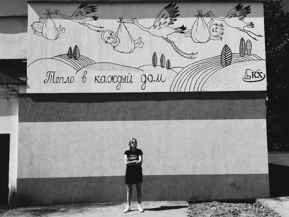 Еще одна работа расположится на углу ул. Гоголя и бульвара Космонавтов. «В этом году это будет последняя работа для котельного хозяйства. Последняя, потому что холодает, — рассказала «БГ» Леонида Василькович. — Я бы рисовала еще, но пока не известно. Скоро узнаю».