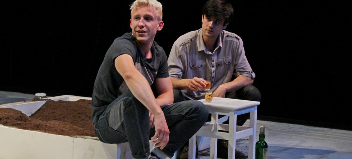 Спектакль Центра визуальных и исполнительских искусств «Арт Корпорейшн» интересно решен визуально. Можно было бы «поселить» героев в квартире, где стоит старенькая мебель и на стенах висят советские ковры. Но художник Андрей Жигур поместил их в пространство с белыми экранами и ящиками с землей. Эту землю артисты пересыпают бесконечно. Создается ощущение искусственности происходящего. Будто бы герои — дети, которые заигрались в песочнице. Деньги у них сыплются как песок, вместо настоящей еды — наполненные землей тарелки и стаканы. Эта искусственность отчасти гасит тот жесткий текст, который льется со сцены. Жаль, что в жизни нельзя заменить еду песочными куличиками.