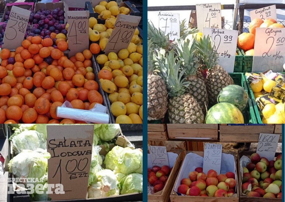 После краткого обзора брестских цен, самое время виртуально «пройтись» по рынку «Олимпия» в Варшаве. Фотографии были заимствованы из социальной сети Фэйсбук, где один из участников продемонстрировал цены на овощи и фрукты в польской столице.