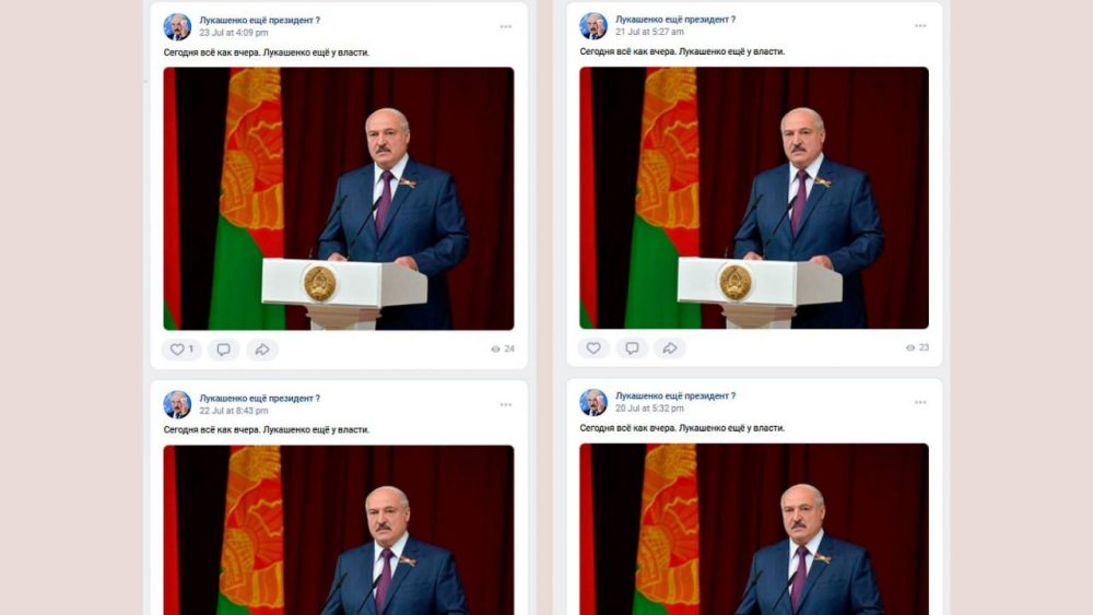 Cтраница «Лукашенко еще президент?» была создана еще в мае 2020 года, и каждый день там появляется короткая сводка с ответом на вопрос из названия страницы. Последние полтора года там публикуется следующая формулировка: «Сегодня все как вчера. Лукашенко еще у власти». На паблик подписаны 185 пользователей.