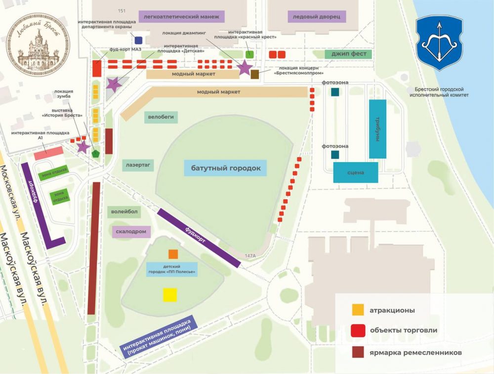 Власти Бреста показали на схеме, где будут основные мероприятия празднования Дня города