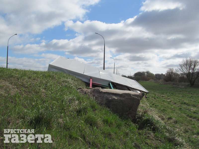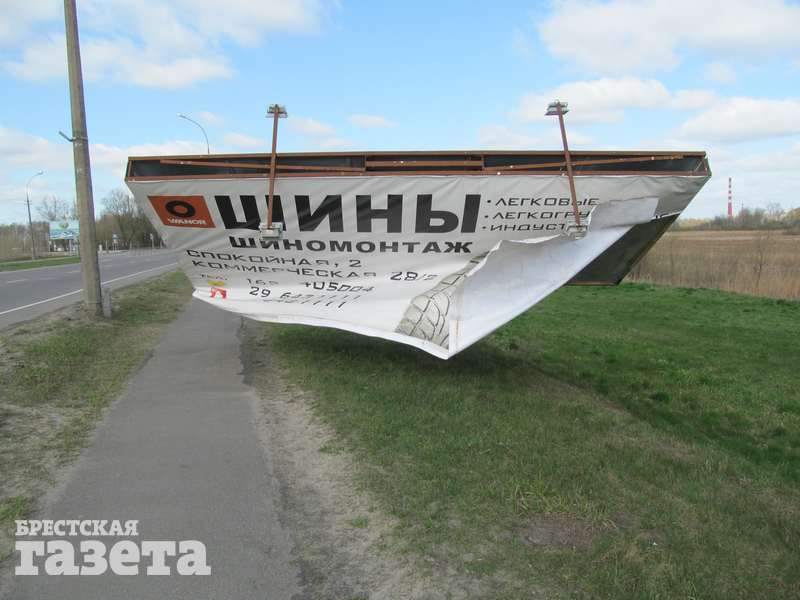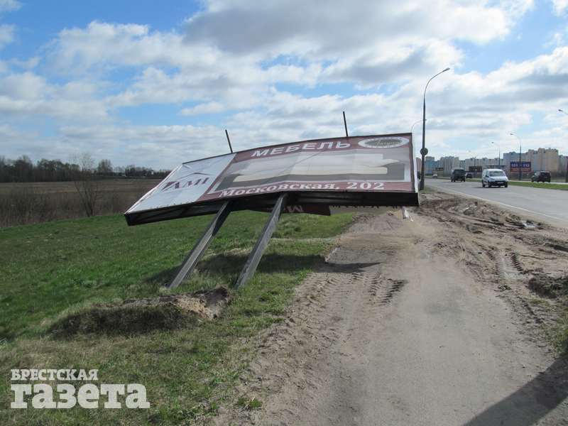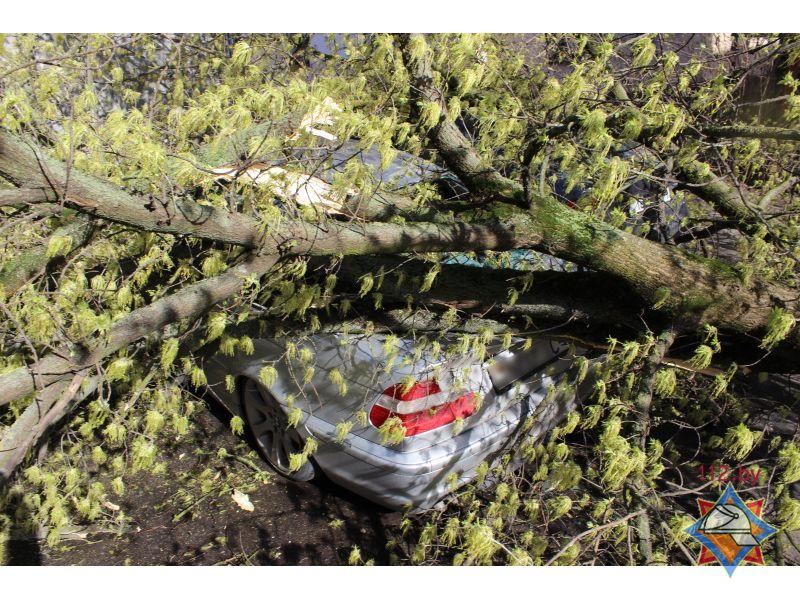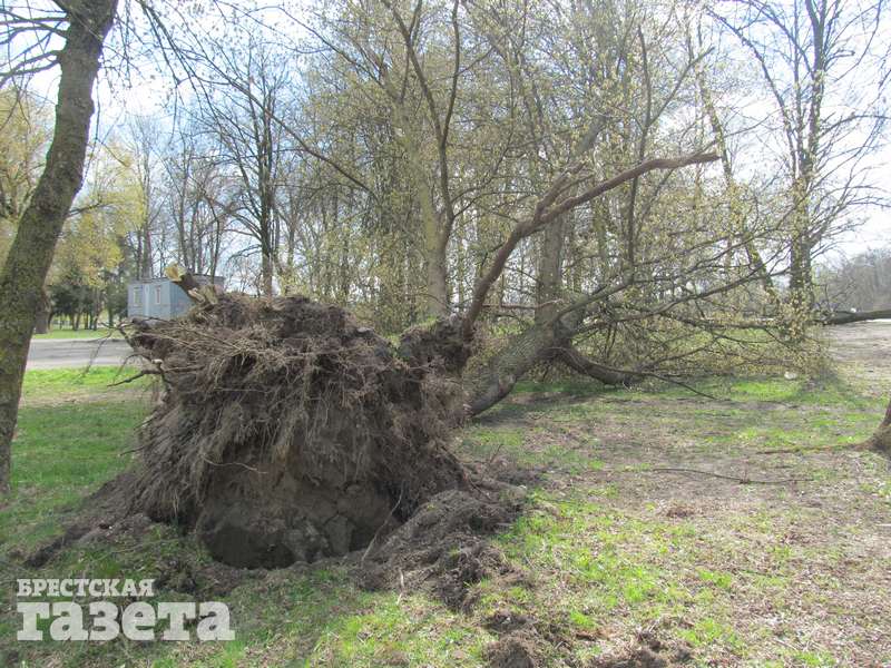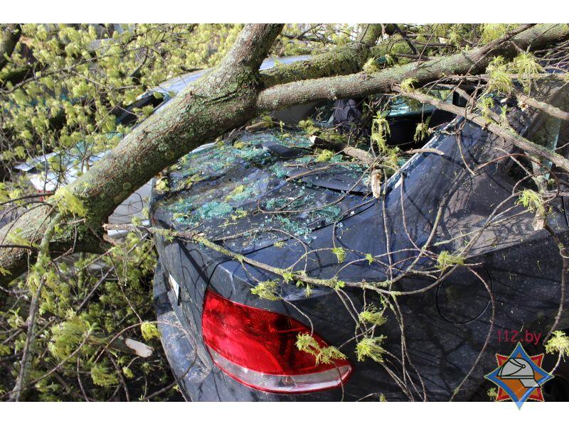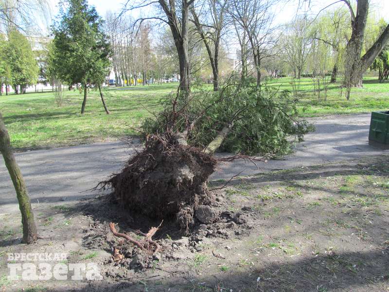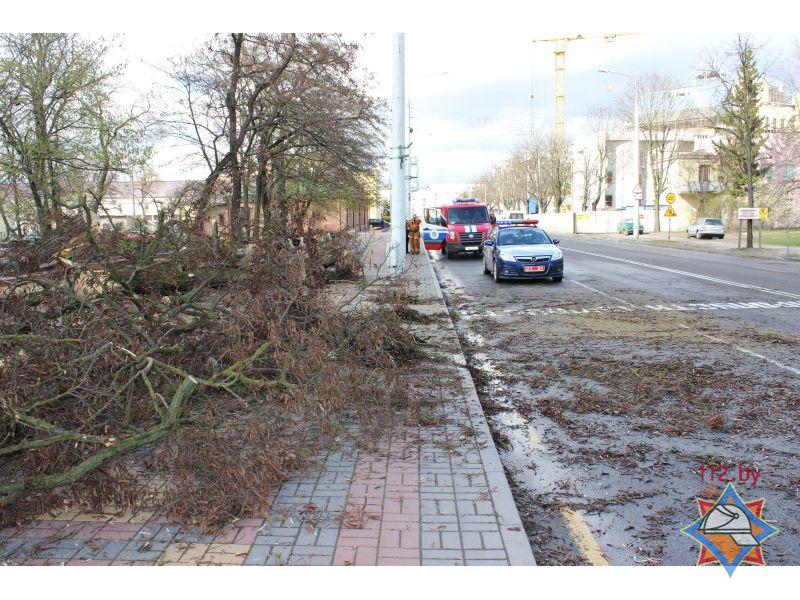 Ветер повалил несколько рекламных щитов, стоявших вдоль Варшавского шоссе. Пострадали деревья в сквере на набережной Ф.Скорины: некоторые вывернуты с корнем, некоторые сломаны.