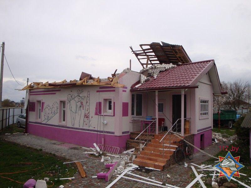 пострадали 3 населенных пункта, повреждены кровли 2 жилых домов, 1 объекта соцкультбыта (ГУО «Немержанская общеобразовательная школа»), сорвано и повреждено 70 листов шифера |