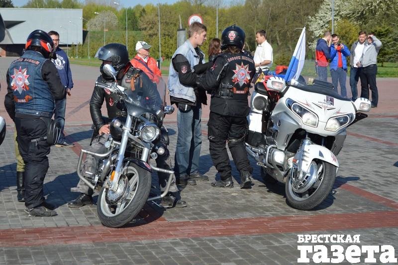 На своем блоге в ЖЖ российский клуб «Ночные волки» сообщил, что участники пробега приехали в Брест ночью 27 апреля и разместились в гостинице. На жилетах байкеров — эмблема «Ночных волков», а также надпись «Дороги Победы».