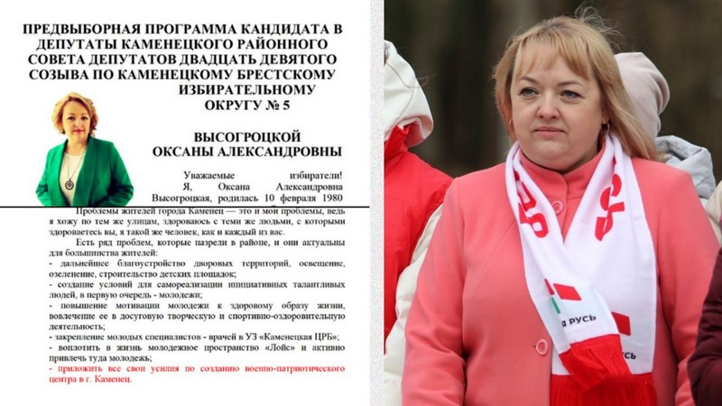 Брестская «Вясна» изучила предвыборные программы кандидатов в депутаты в Каменецком районе на Брестчине. Особое внимание обратила на себя программа Оксаны Высокогроцкой.