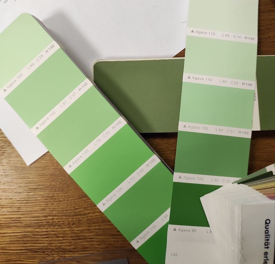 К слову, фрагменты фасадов с сохранившейся оригинальной окраской Chromoxidgrün 28S1 показывают, насколько разительно отличаются новые и исторические оттенки.