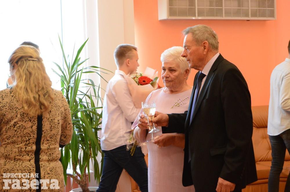 Бриллиантовый юбилей супруги отметили 8 мая в стенах отдела ЗАГС Брестского горисполкома. Вместе с ними этот праздник разделили их родные и близкие. В этот день они вновь надели на безымянные пальцы друг другу обручальные кольца, шагнули на дорогу следующего, седьмого по счету, десятилетия счастливой семейной жизни через рушник, танцевали под «Зорку ясную» и снова закрепили свой союз поцелуем и бокалом шампанского.