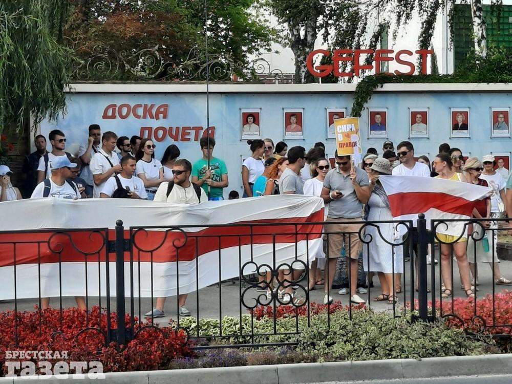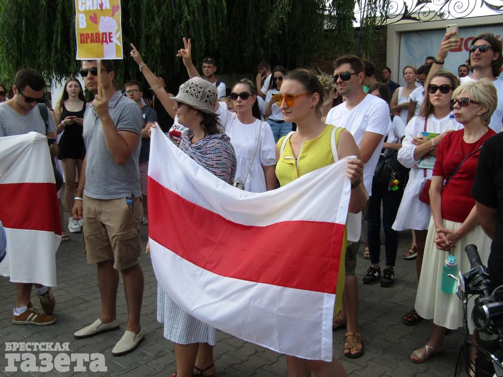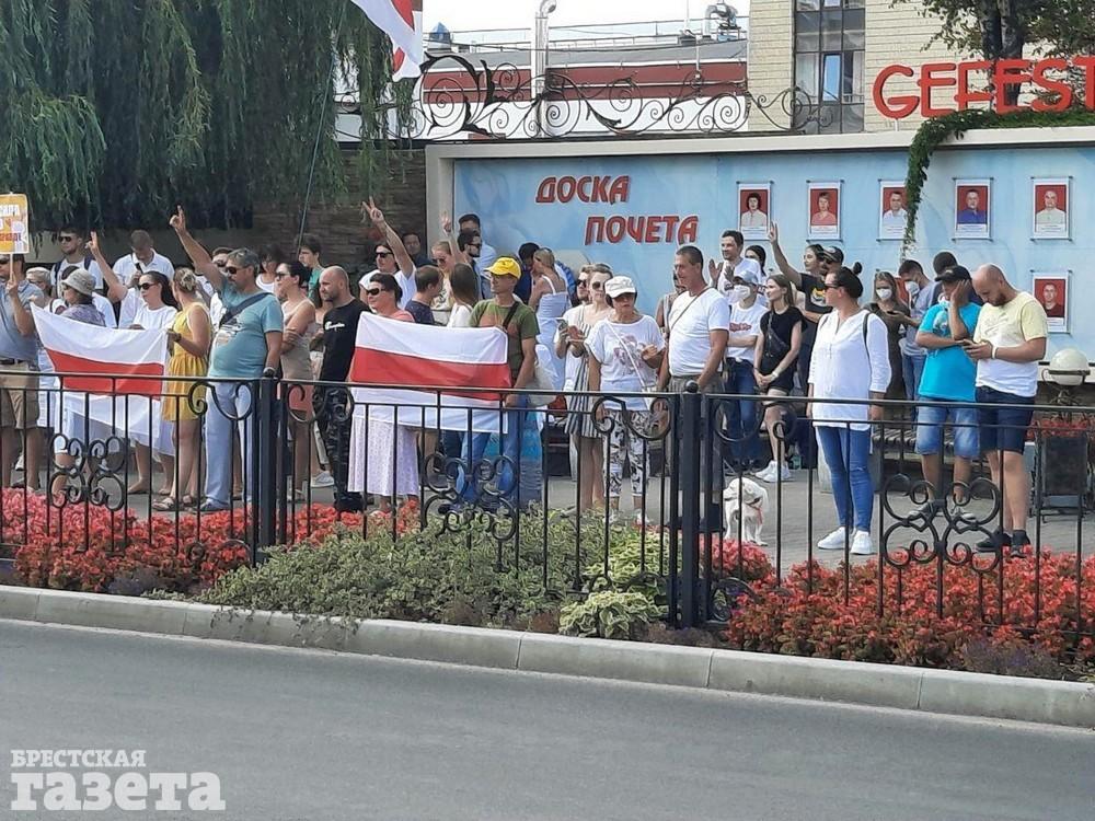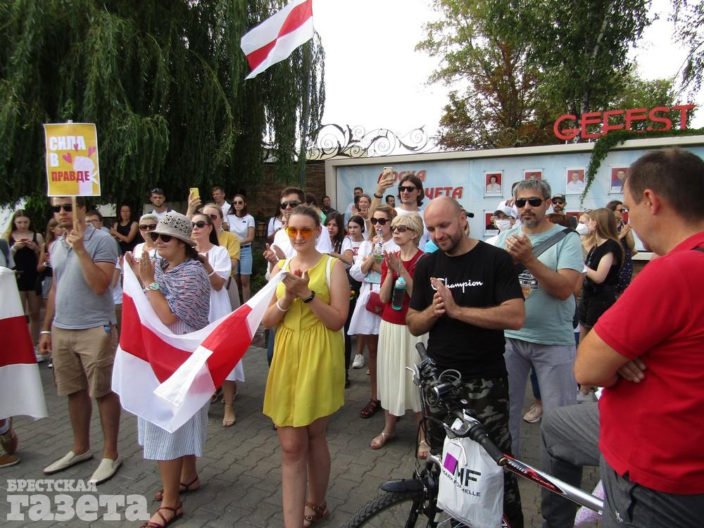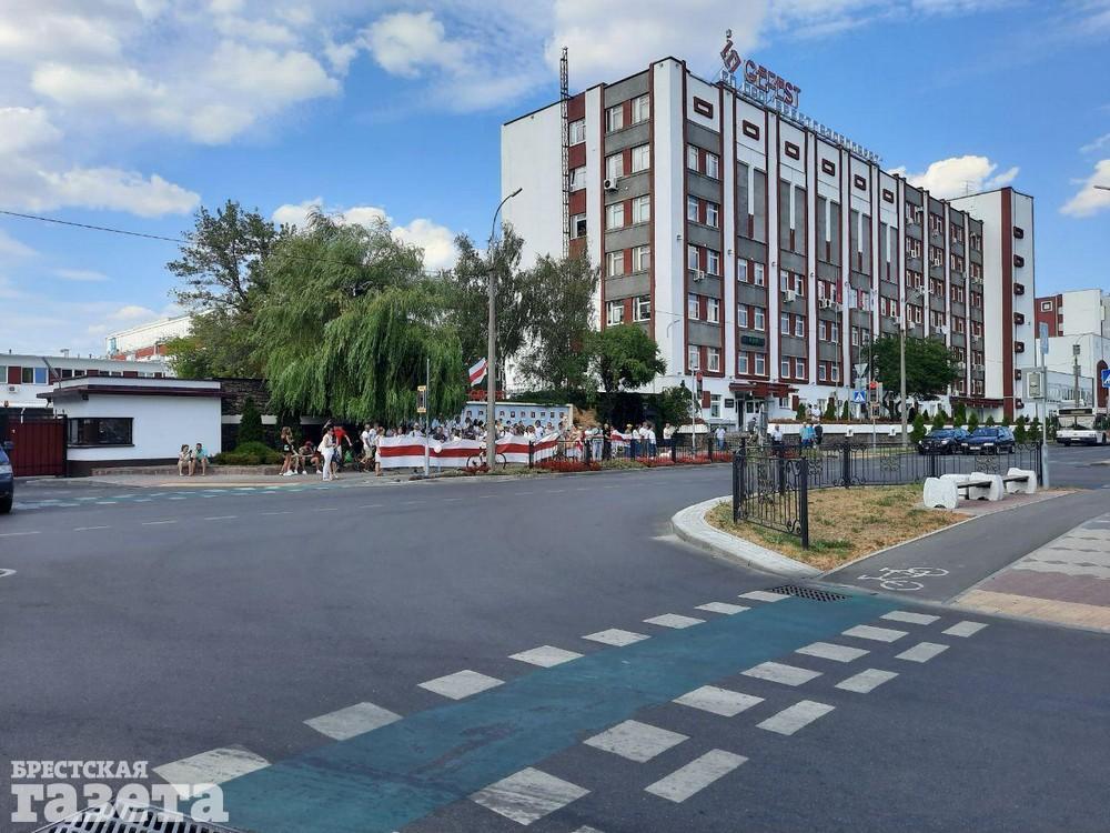Днем 17 августа брестчане собрались у здания «Газоаппарата», чтобы поддержать работников предприятия, которые грозятся устроить забастовку в случае невыполнения требований, выдвинутых ранее властям города.