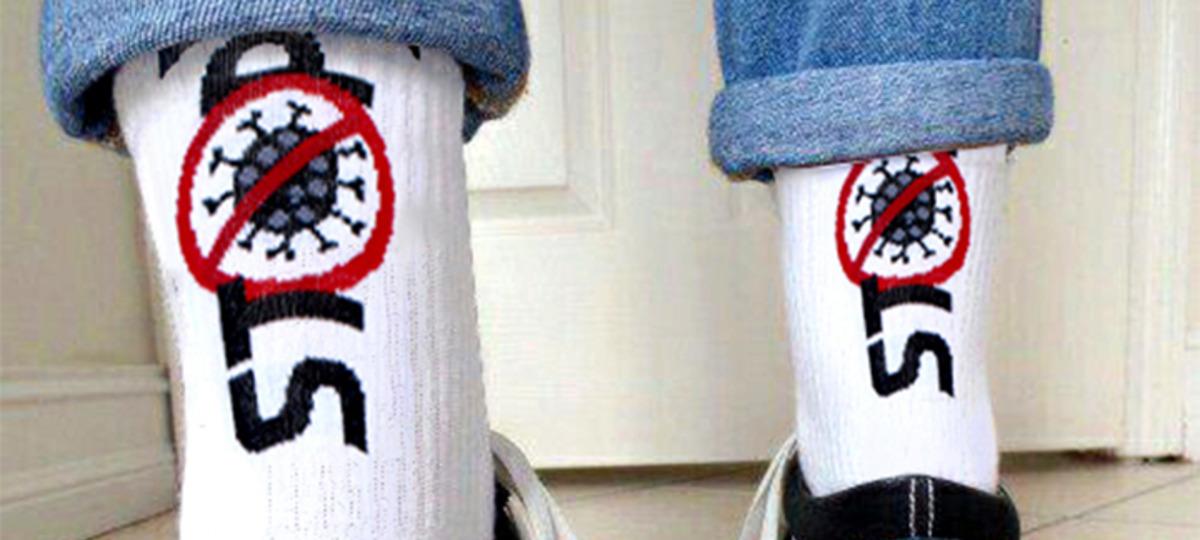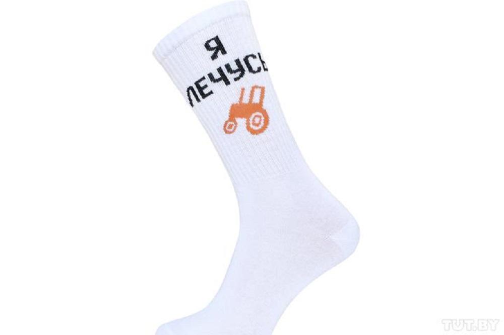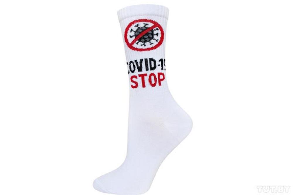 Директор ОАО «Брестский чулочный комбинат» Сергей Жевнерович рассказал TUT.BY о выпуске тематических «противовирусных» носков, которые должны добавить позитива людям. Новинки уже появились в магазинах. Обычные белые носки содержат надписи «STOP COVID-19» и «Я лечусь», под которой еще и изображен трактор.