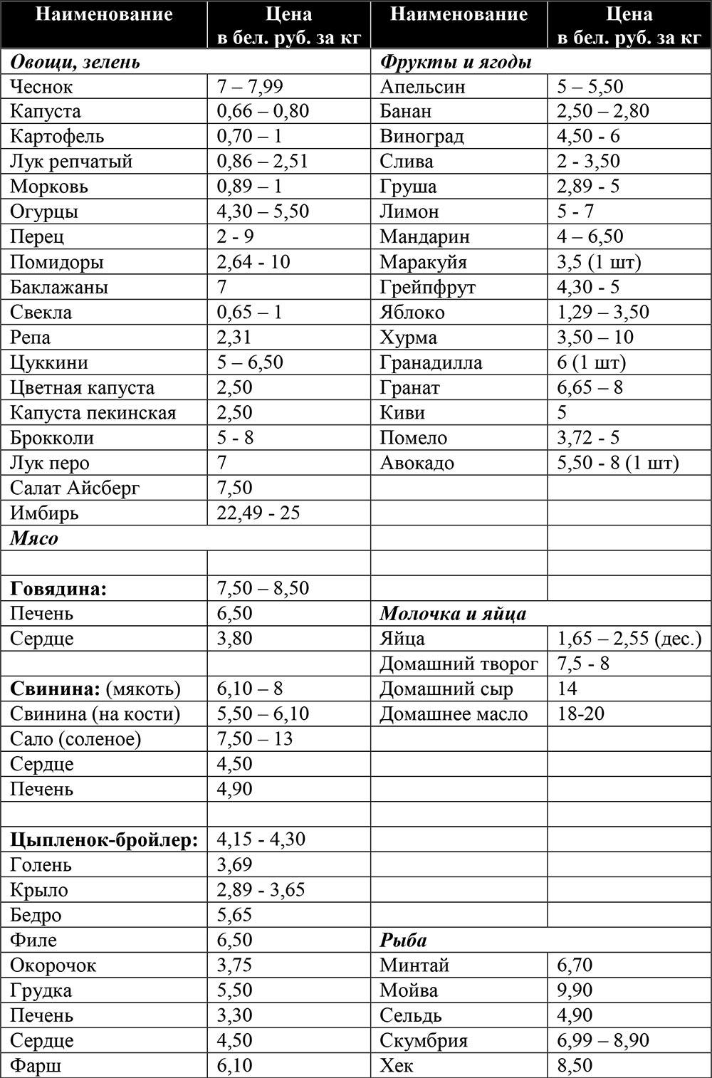 Диапазон цен на эти и другие овощи можно посмотреть в таблице ниже.