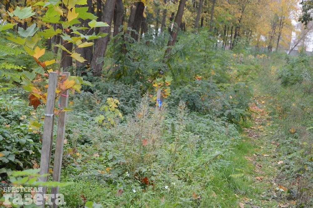 Спустя год, 22 октября, корреспондент «БГ» решила посмотреть, как поживают молодые деревья. Только вот из-за разросшегося кустарника, травы и крапивы не сразу обнаружила аллею многодетных. Если бы не деревянные подпорки для саженцев и ленточки, которые вешали семьи по количеству детей, аллея и вовсе осталась бы незамеченной. Некоторые деревца из-за окутавшей их акации высохли, на месте других и вовсе остались лишь деревянные палки.