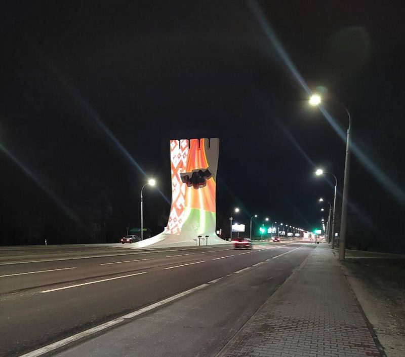 С 23 февраля стелу на въезде в Брест со стороны Минска зачем-то подсветили госфлагом Беларуси. Смотрится так же ужасно, как госфлаг на трубе ТЭЦ. Интересно, чья была инициатива подсветить ее красно-зеленым флагом.