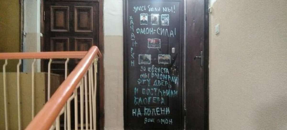 Брестский блогер Сергей Петрухин 18 сентября выложил на своей странице в Facebook фото входной двери в свою квартиру, на которой размещены фотографии сотрудников милиции и надписи.