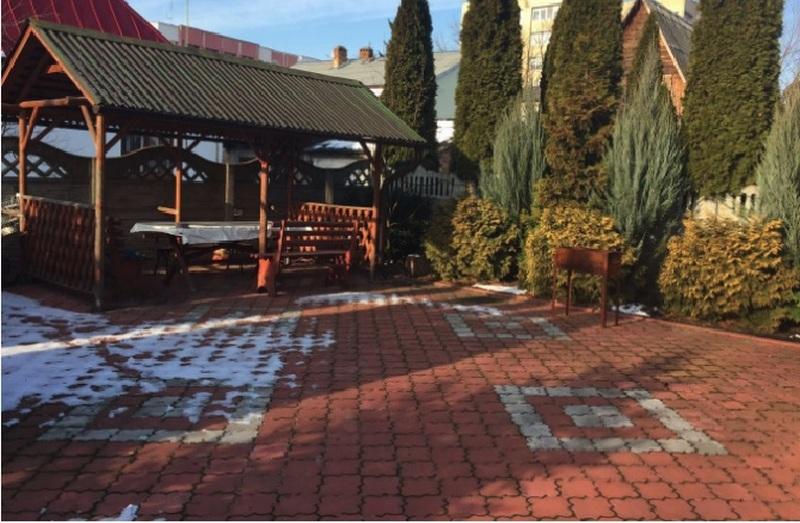 На участке есть хозпостройки, гараж и площадка для барбекю. Во дворе разбит сад.