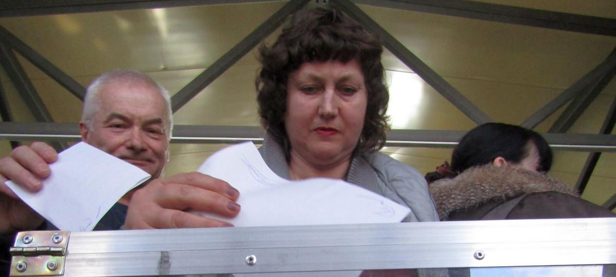 Когда все желающие отдали свои голоса, урну на открыли, высыпали содержимое на стол и начали подсчет. Сначала подсчитали все бюллетени, а потом стали раскладывать их по стопкам кандидатов, не забывая назвать отмеченную в каждом листке фамилию и показывая каждый бюллетень собравшимся. «Лида, смотри как надо», — явно обращаясь к главе Центризбиркома, громко отметил кто-то из участников голосования.