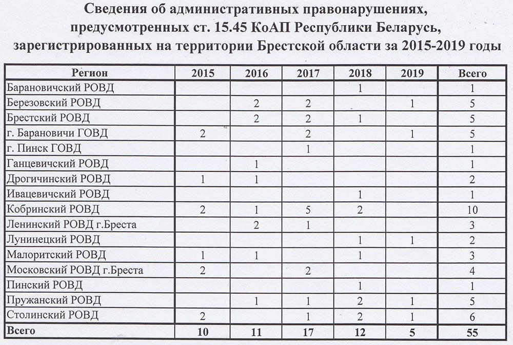 По информации УВД Брестского облисполкома, за 4 с лишним года в регионе было возбуждено 6 уголовных дел по статье 339-1, осуждены 4 человека.