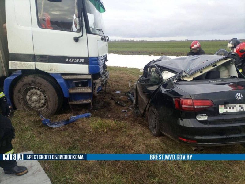 После столкновения обе машины съехали в кювет. В результате ДТП водитель Volkswagen скончался на месте ДТП. Действиям участников происшествия будет дана правовая оценка, сообщает УВД Брестского облисполкома.