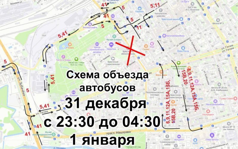 Ограничения движения будут действовать с 23.30 31 декабря до 4.30 1 января, а закрыт будет участок улицы Ленина от улицы Гоголя до улицы Мицкевича. При этом городские автобусы (об их расписании будет сообщено дополнительно) будут следовать в объезд через улицы Мицкевича, Карла Маркса и Комсомольскую. Об этом сообщает председатель горисполкома Александр Рогачук.