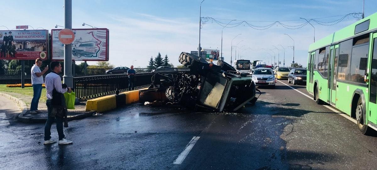 По предварительной информации областной ГАИ, 43-летний водитель трактора МТЗ ехал со стороны улицы Брестских Дивизий в сторону Мицкевича. При спуске с путепровода он наехал на бордюрный камень, в результате транспортное средство опрокинулось.