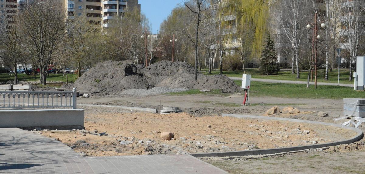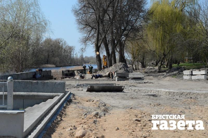В конце марта строители сняли растительный грунт, проложили 50% дождевой канализации, а также выполнили вертикальную планировку вдоль подпорной стенки прибрежной зоны. Коммунальщики обрезали сухие ветки на кронах деревьев.