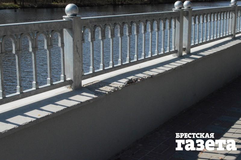 Тем временем на участке набережной, реконструированной в прошлом году, бетонный парапет местами уже разваливается, обнажая арматуру.