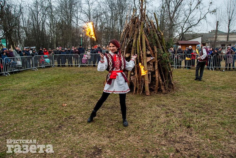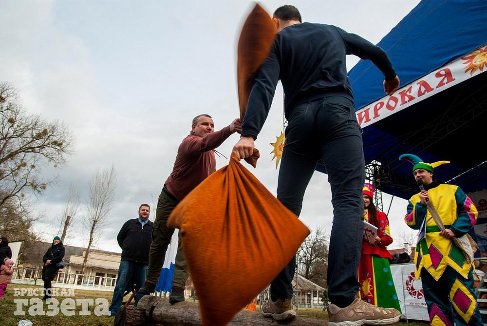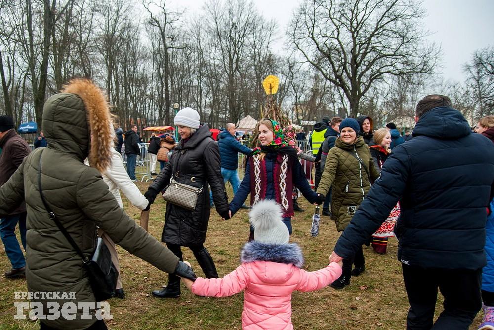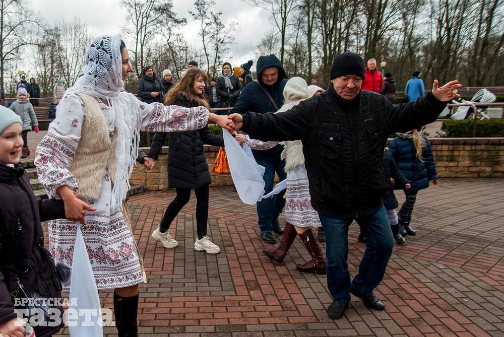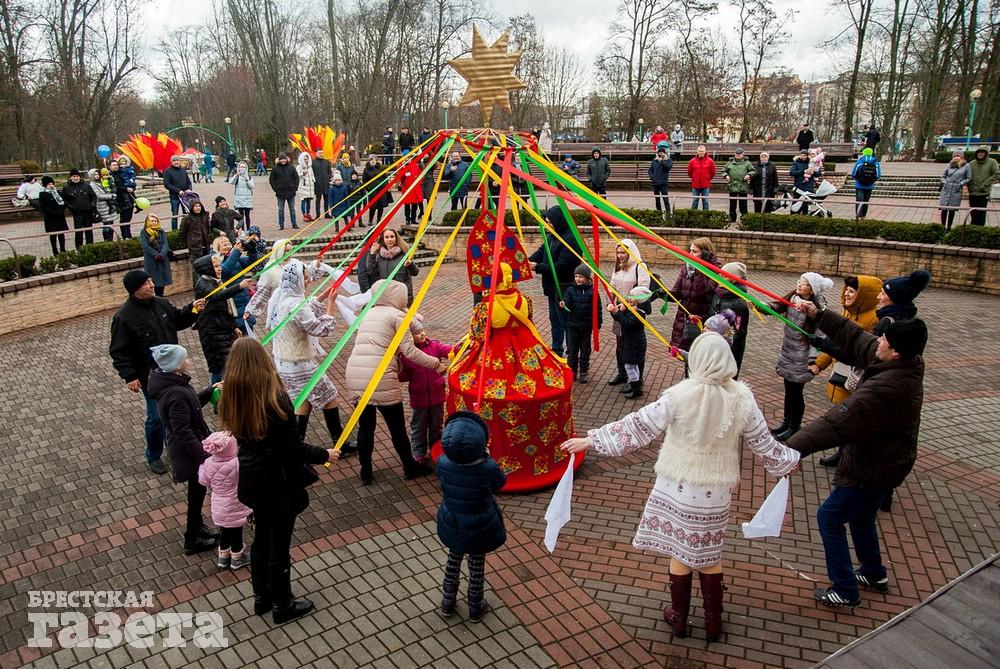 В Бресте веселые проводы зимы, по традиции, проходят, в городском парке культуры и отдыха. Правда, в этом году в наших краях климатическая зима так и не наступила. Вот и на Масленицу снег, выпавший с утра, растаял.