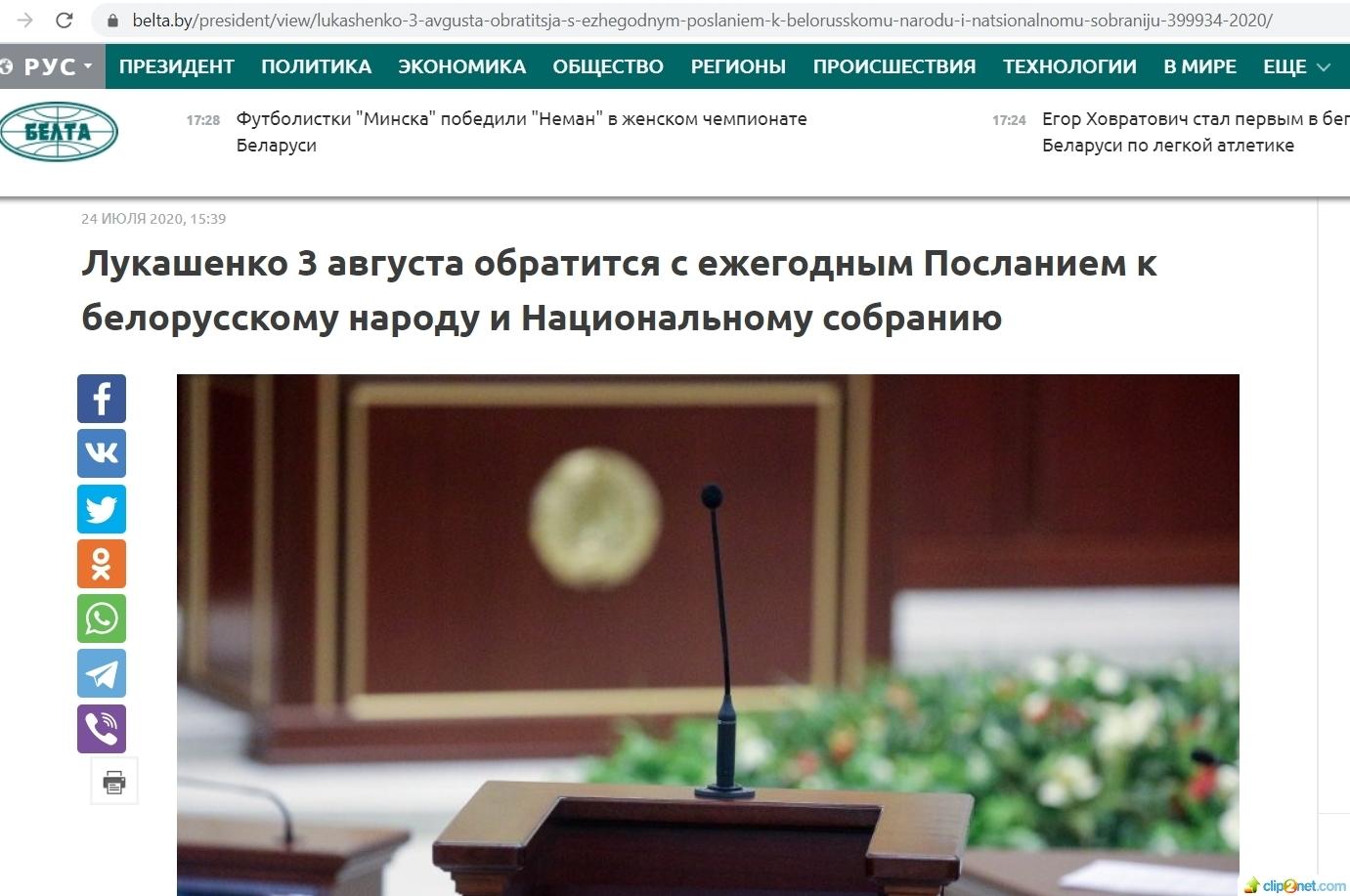 Примечательно, что ранее БеЛТА сообщала, что Лукашенко выступит с посланием именно 3 августа.