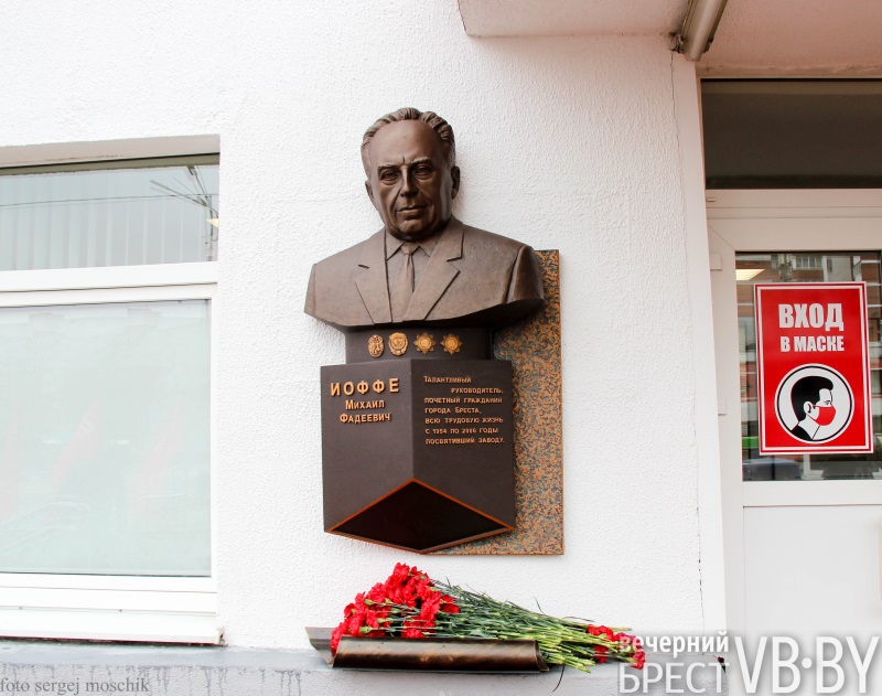 На центральном входе в административное здание СП ОАО «Брестгазоаппарат» сегодня открыли мемориальную доску с барельефом Почетного гражданина города Бреста Михаила Фадеевича Иоффе.