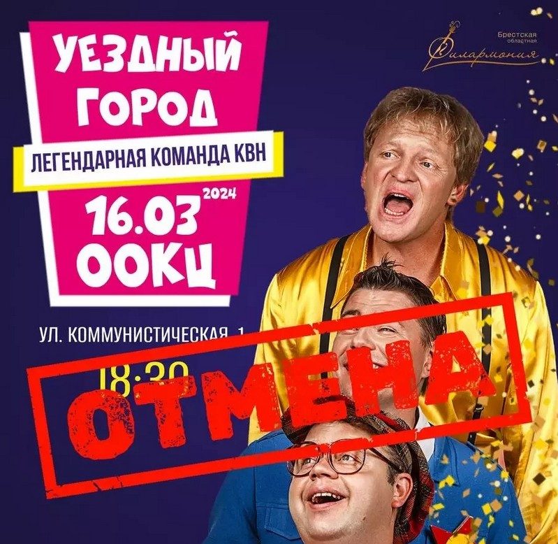 В Бресте отменили концерт команды КВН «Уездный город», потому что к нему нет интереса