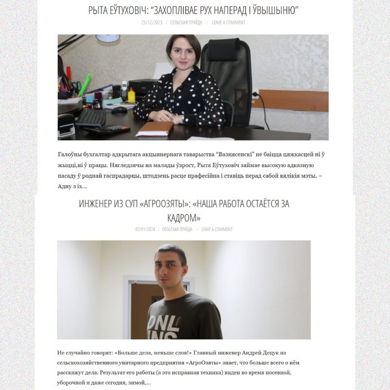 А по наблюдениям брестской «Вясны», с 17 декабря 2023 года жабинковская районная газета «Сельская правда» выпустила на сайте пять материалов в формате «Рассказываем о людях нашего района». В статьях рассказывается о том, где родился, где учился, когда приехал работать в Жабинковский район тот или иной номенклатурщик.