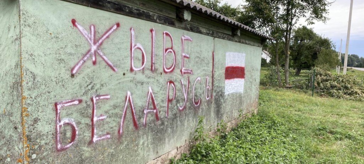- на остановке общественного транспорта написал «Жыве Беларусь»;