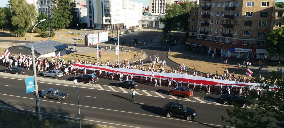 После мирного протеста на площади Ленина и шествия к СИЗО, колонна горожан вышла на проспект Машерова и пошла по вчерашнему маршруту.