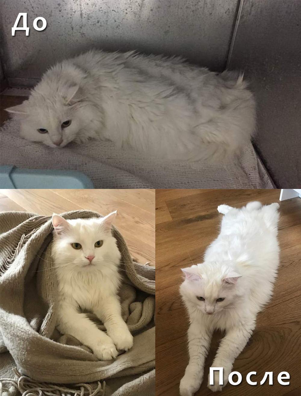 Родственники не знали, куда деть кота. В итоге белого «короля» запихнули в полиэтиленовый мешок и привезли в пункт отлова. Так он оказался в маленькой железной клетке. Из таких выходят немногие. От сестры умершей хозяйки Ирина знала, что кот нуждается в пристройстве, но ей не говорили, где он, а потом и вовсе пропали со связи. Ирина связалась с пунктом отлова и, описав признаки, узнала, что к ним поступил такой кот.