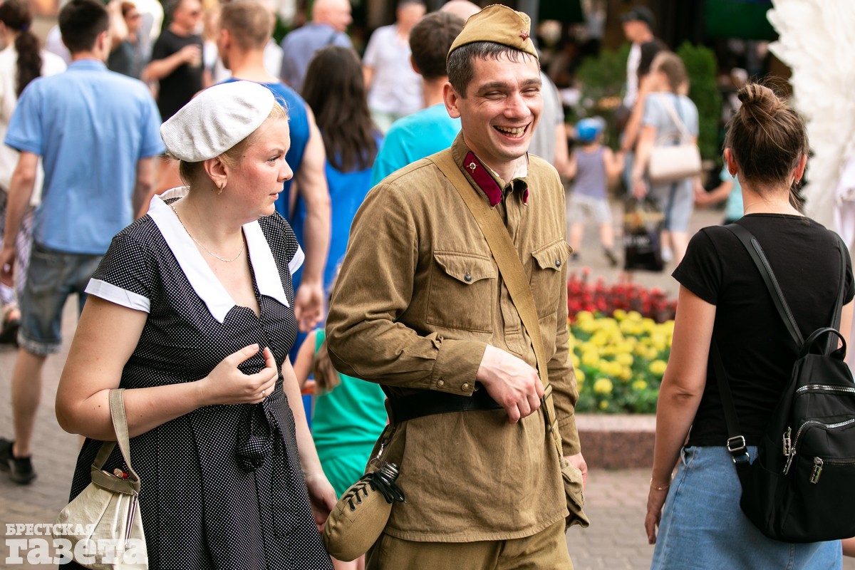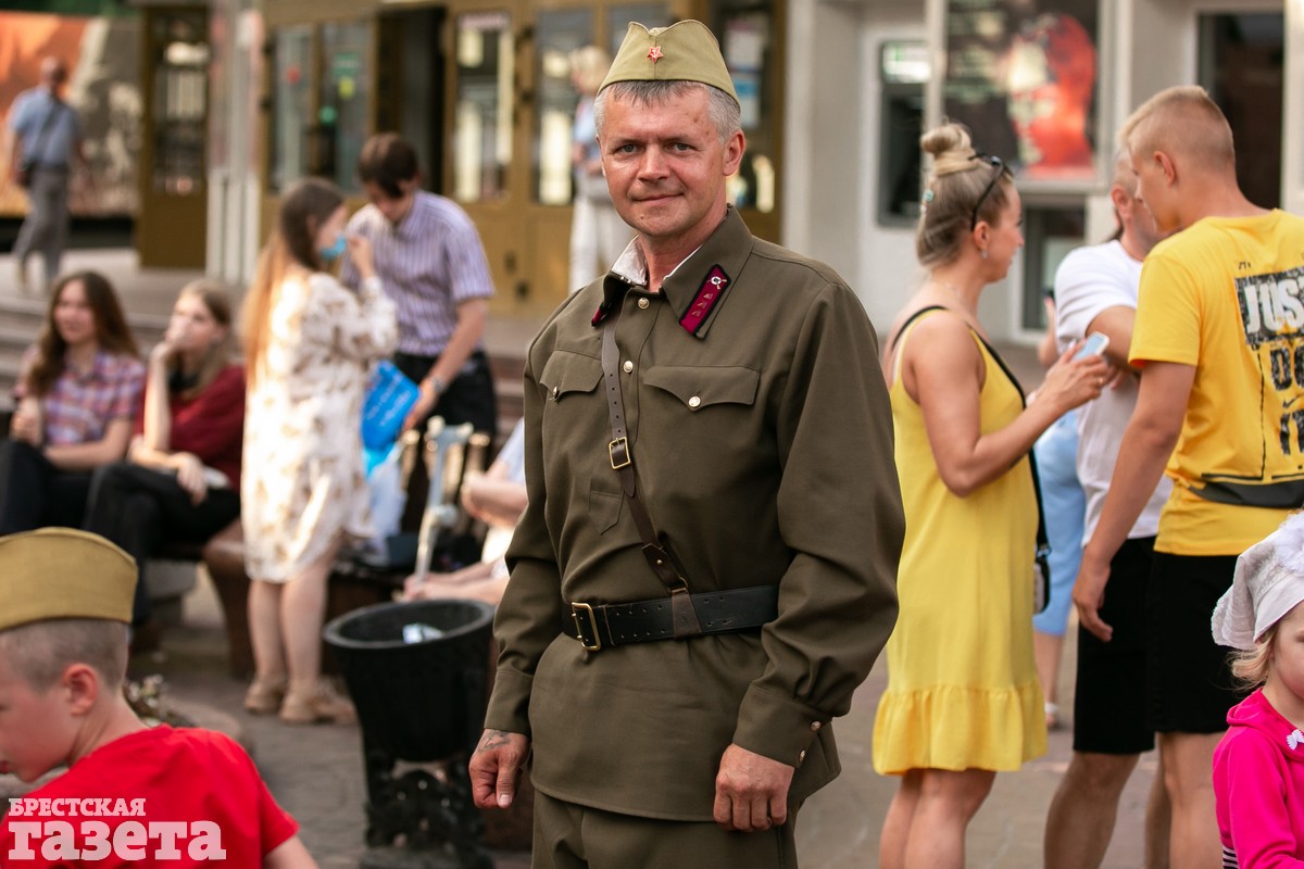 С 2011 года ближе к вечеру 21 июня в Бресте проводится реконструкция последнего мирного дня. В прошлом году ее отменили из-за пандемии коронавируса. В понедельник 21 июня 2021 года на пешеходной улице Советской вновь появились девушки и женщины в платьях довоенного стиля и мужчины в военной форме. Брестчане и гости областного центра реконструировали последний мирный день жизни города 21 июня 1941 года.