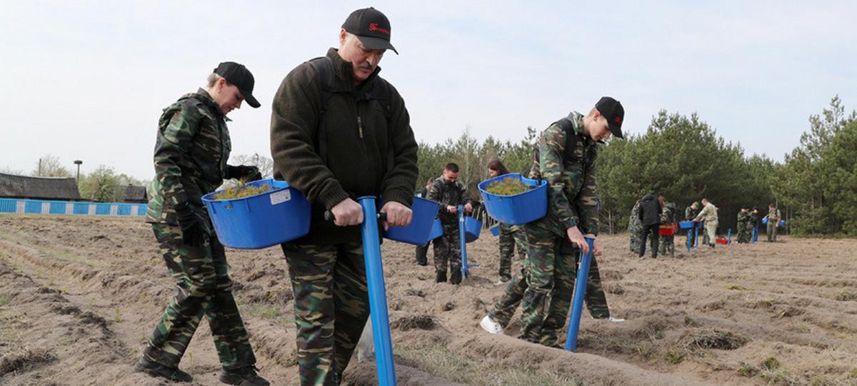 В телеграм-канале «Пул Первого» появилось фото президента на субботнике. Александр Лукашенко работал на юге страны, в Петриковском районе – одном из регионов, который пострадал от аварии на Чернобыльской АЭС. Как президент говорил во время визита на фабрику «Славянка», в годовщину трагедии он всегда посещает такие районы.