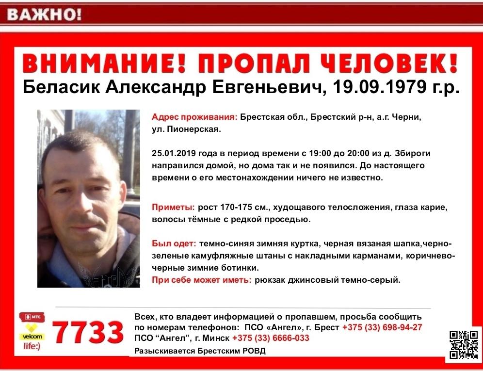 В Брестском районе 25 января пропал житель агрогородка Черни Александр Беласик.