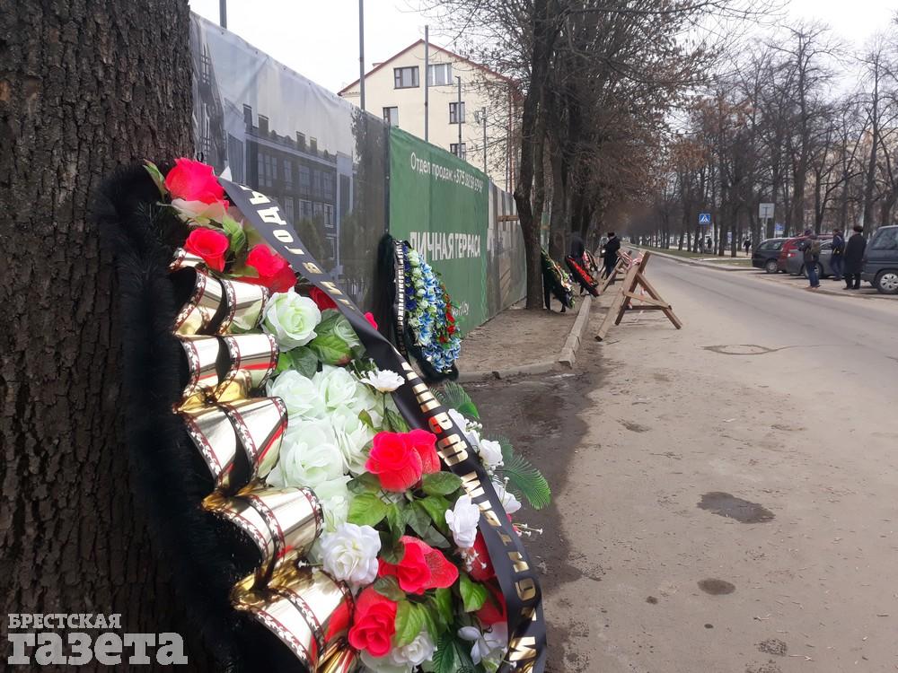 «Простите нас за то, что мы не сразу опомнились», «Гражданам Бреста, зверски убитым фашистами в годы ВОВ», — такие надписи размещены на лентах. По словам Виталия Казака, он изготовил их за свой счет, но каждый венок подписан от жителей одного из микрорайонов города.