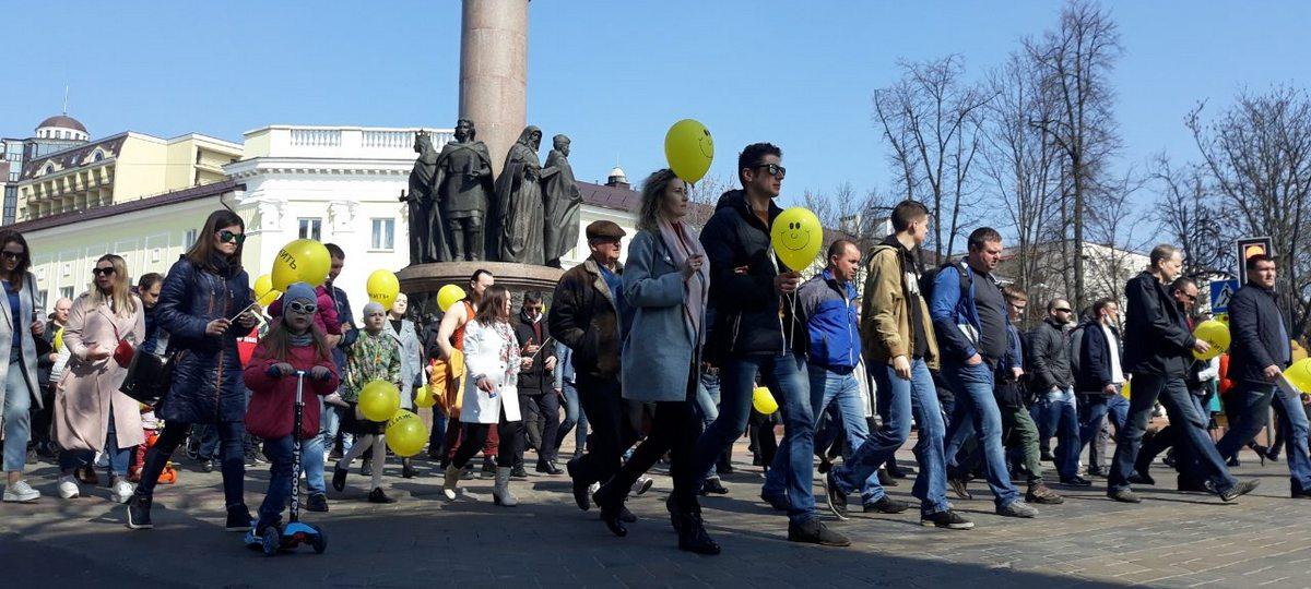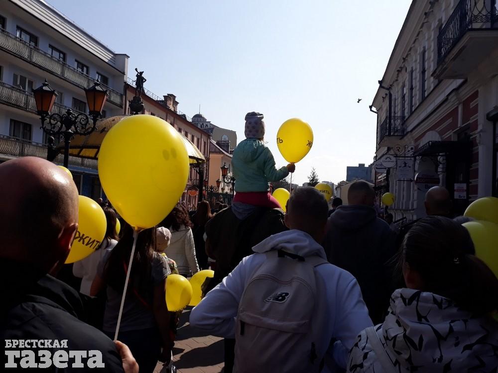 Участники кормления, у многих из которых были желтые шары, вновь прошли по улицам Пушкинской и Советской.