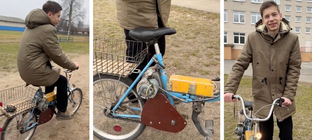 «Идея пришла спонтанно, когда я нашел у дедушки в сарае мотор от системы ABS. Решил прикрепить его к велосипеду», — рассказал Алексей в видео, которое стало популярным в TikTok. На данный момент у ролика — более 402 просмотров.