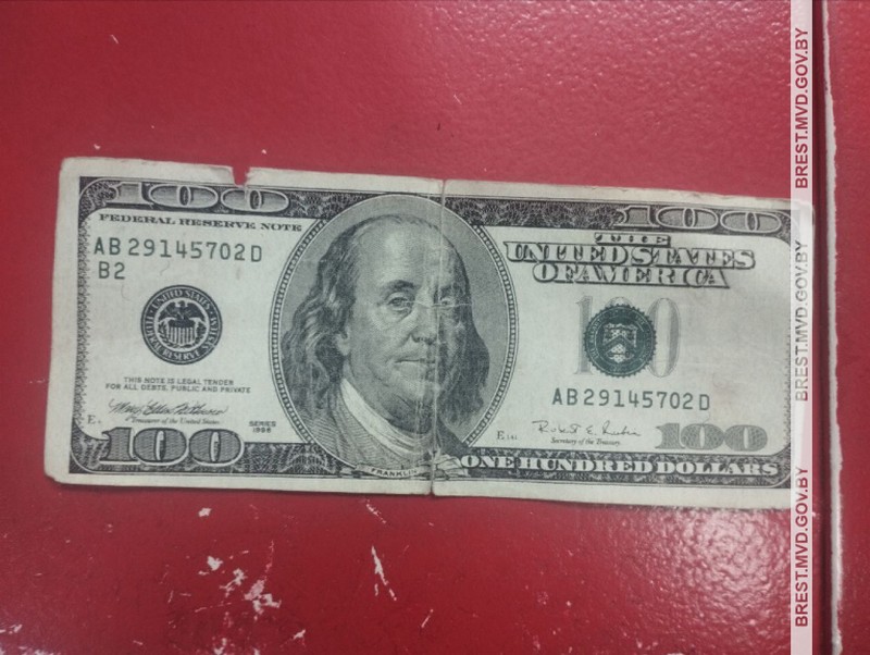 В Столинский РОВД сообщили, что 83-летняя жительница одной из деревень района в одном из банков предъявила к обмену 100 долларов США с признаками подделки. По заключению эксперта, денежный знак признан поддельным, сообщили в УВД Брестского облисполкома.
