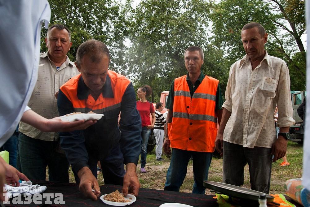 На нее вышли работники служб ЖКХ, которые занимаются реконструкцией этой территории, а также военнослужащие, БРСМ, горожане.