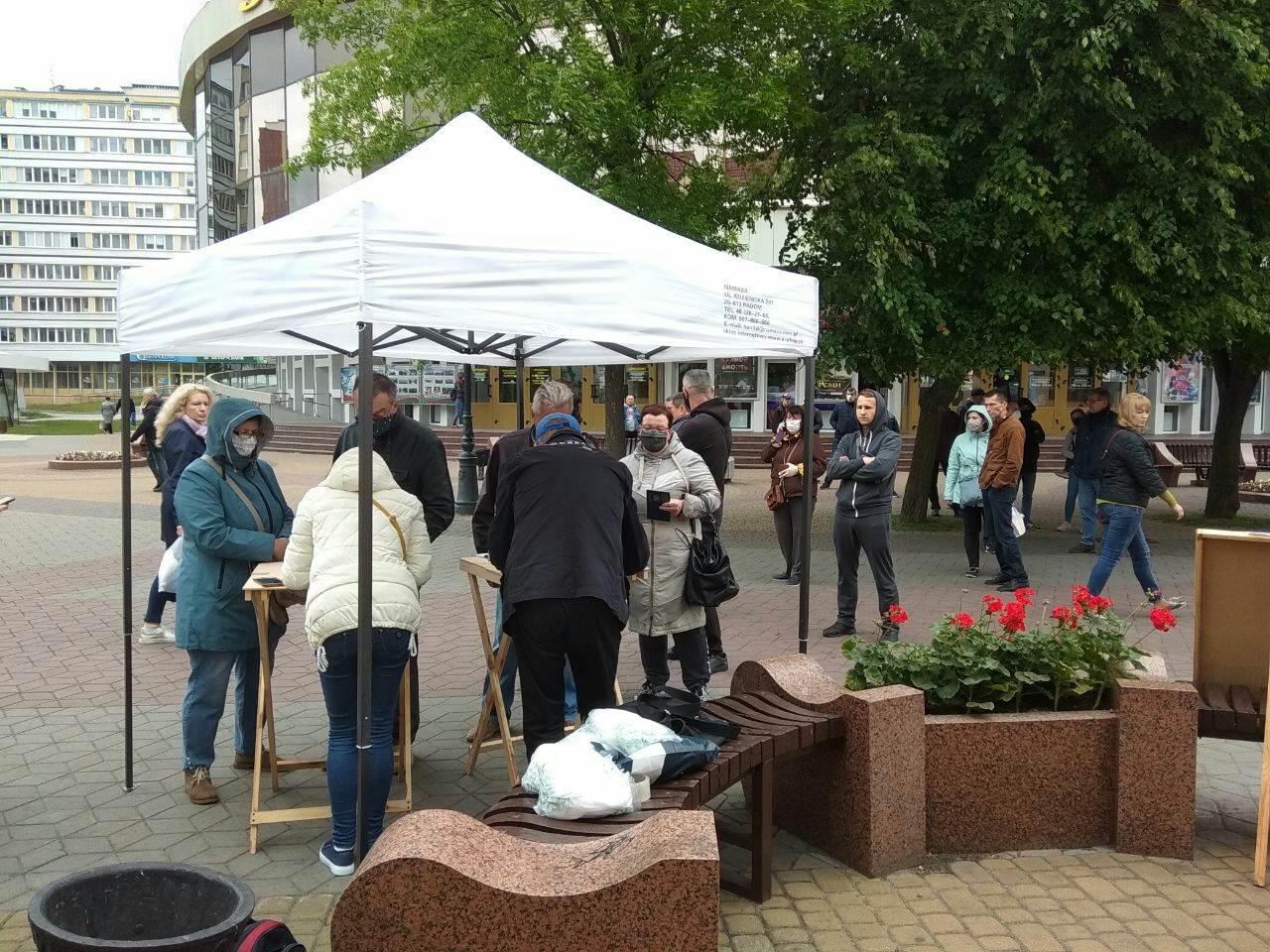 Инициативная группа в поддержку Светланы Тихановской продолжает собирать подписи в городах Беларуси. Брест не стал исключением. Люди начинают выстраиваться в очереди возле кинотеатра «Беларусь».