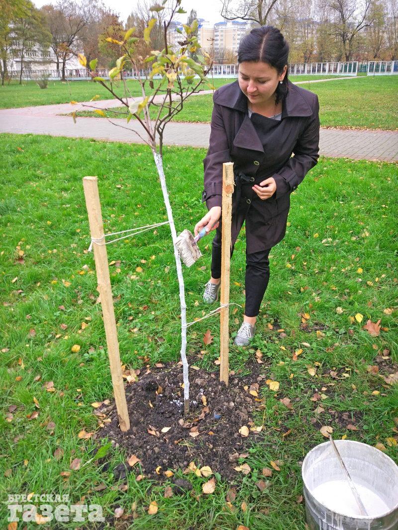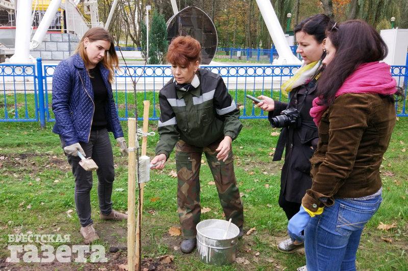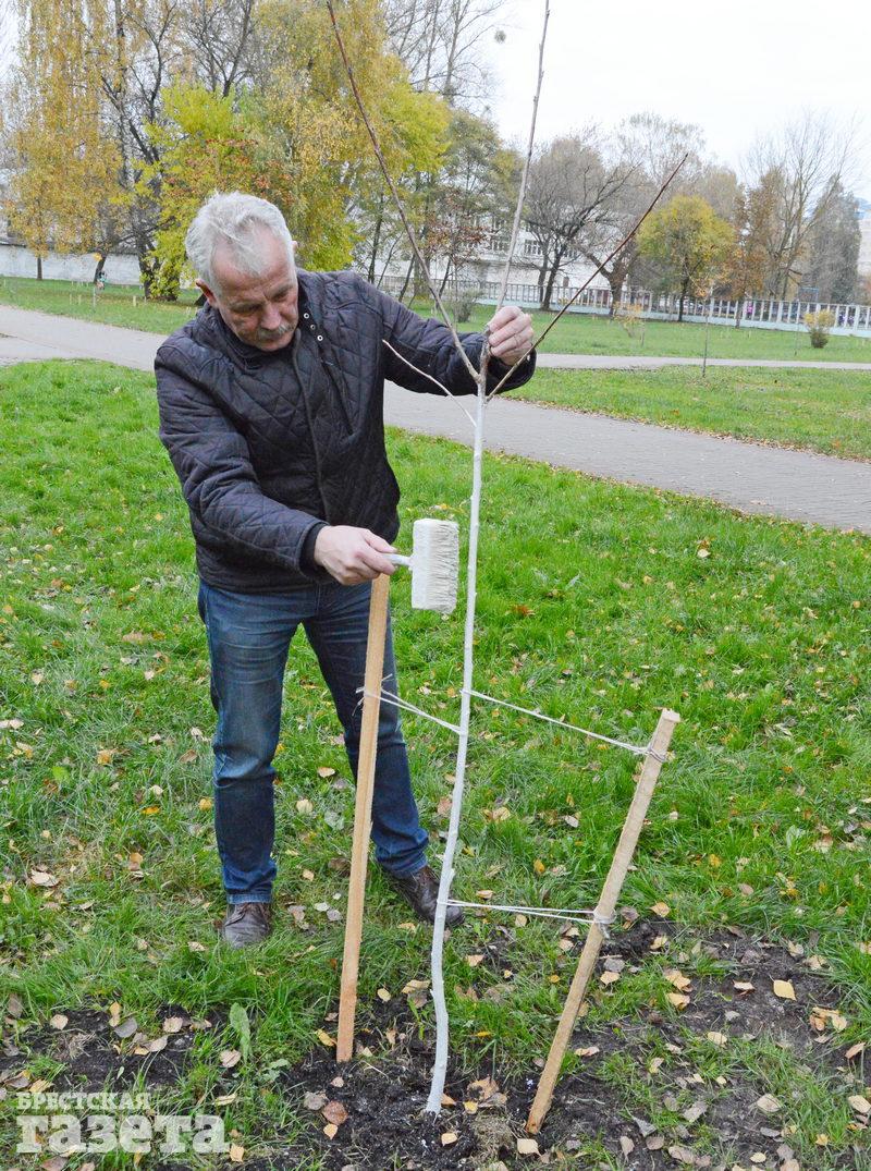 «Побелка защищает деревья от морозов, солнечных лучей, грызунов и паразитов. Неправда, что побелка деревьев — это пережиток прошлого. Некоторые это делают для красоты, поздно красят. Весной, например. Надо красить именно осенью. Достаточно делать это один раз в год, не больше. Красить ствол необходимо до первых ветвей. Если дерево высокое и до первых ветвей не достать, то чем выше, тем лучше», — пояснила корреспонденту «БГ» Наталья Куприянчик, инженер садово-паркового хозяйства Брестского парка культуры и отдыха.