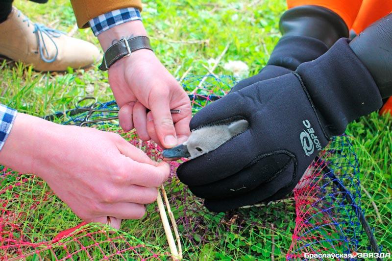 Оперативная группа в составе местных спасателей, сотрудников районных инспекций природных ресурсов и охраны окружающей среды, ветеринарной станции выдвинулась на берег озера Новята. Действительно, неподалеку от берега в зарослях находилась семья лебедей с птенцами, у одного из которых в клюве торчал рыболовный крючок, а леска с него была обмотана вокруг стебля тростника.
