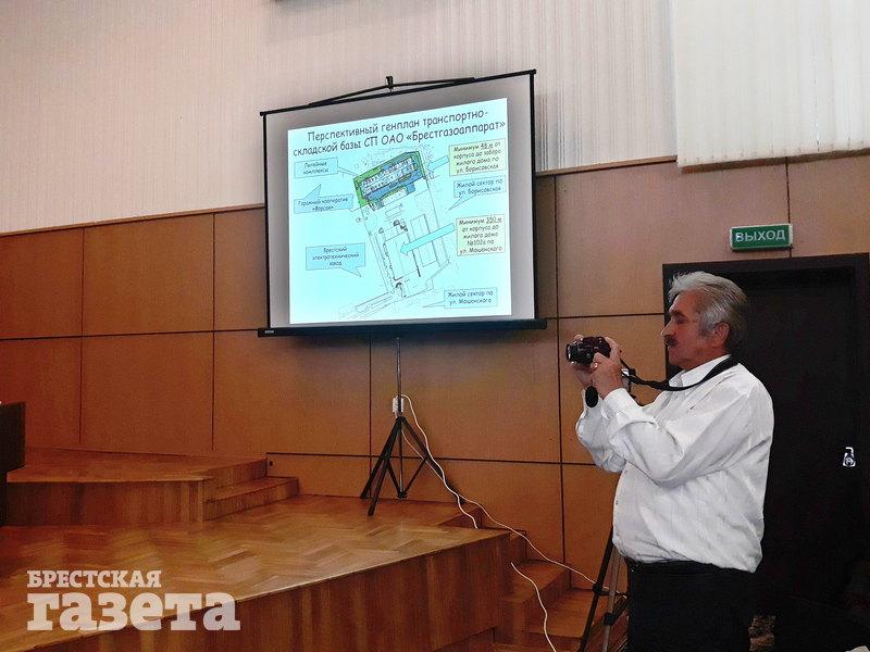 Когда настал черед высказаться жителям Березовки, первой микрофон взяла Елена Кузавко. Она рассказала, что, когда покупала квартиру по долевому принципу, на карте из производств значился только ЭТЗ. По ее словам, о нахождении поблизости транспортно-складской базы «Брестгазоаппарата» многие дольщики узнали, когда дом уже был построен.
