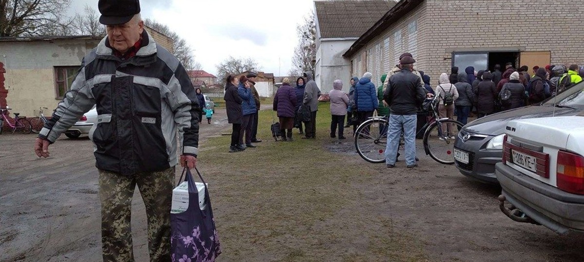 В Ганцевичах выстраиваются огромные очереди за гуманитарной помощью