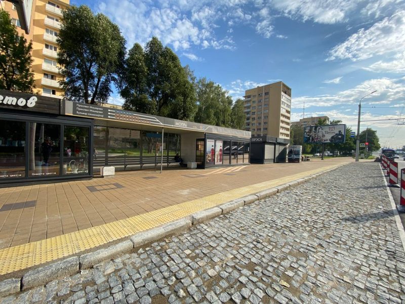 Часть остановок общественного транспорта делают мощеными, по их краю рабочие укладывают тактильную плитку для безопасности слабовидящих людей. В этом году на проспекте Машерова обновят шесть остановок. Все работы за счет областного бюджета дорожники планируют закончить до октября.