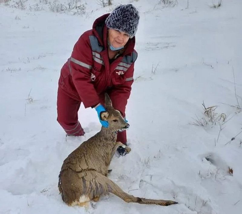 Фотофакт. В Столинском районе работники скорой помощи спасли косулю